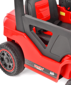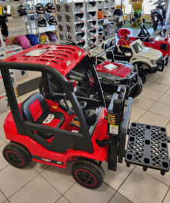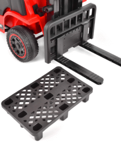 Upea akkukäyttöinen lasten trukki hienoilla toiminnoilla! Trukissa on toimiva nostomekanismi ja mukana toimitetaan trukin mittasuhteisiin sopiva kuormalava, jota on hauska nostella ja siirrellä paikasta toiseen
